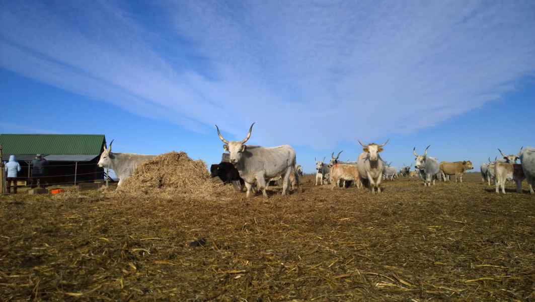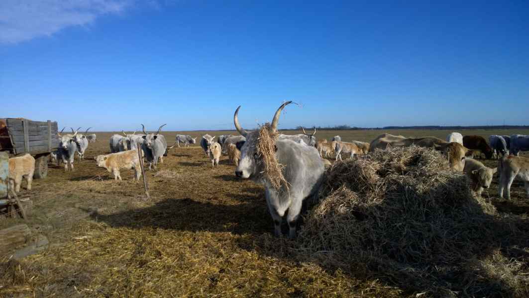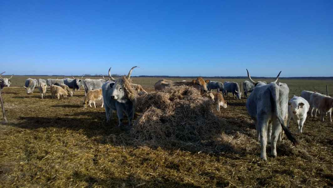 Állományunkban jelenleg 85 tehén található, fajták tekintetében dominál a magyar szürke, valamint annak Charolais és Blonde d'Aquitaine fajtájú húshasznú keresztezései. A takarmányozás gerincét tavasztól őszig a tápanyagokban gazdag, friss legelő adja. A legeltetéses gazdálkodás a lehető legtermészetesebb módja az állattartásnak, az állatok jó közérzetéhez és a kiváló húsminőség eléréséhez elengedhetetlen. A későősszel és télen „ad libitum“ etetett szálas takarmányt teljes egészében a gazdaságunkban állítjuk elő, a kiegészítő tápokat, premixeket, nyalósót megbízható kereskedőktől vásároljuk.
